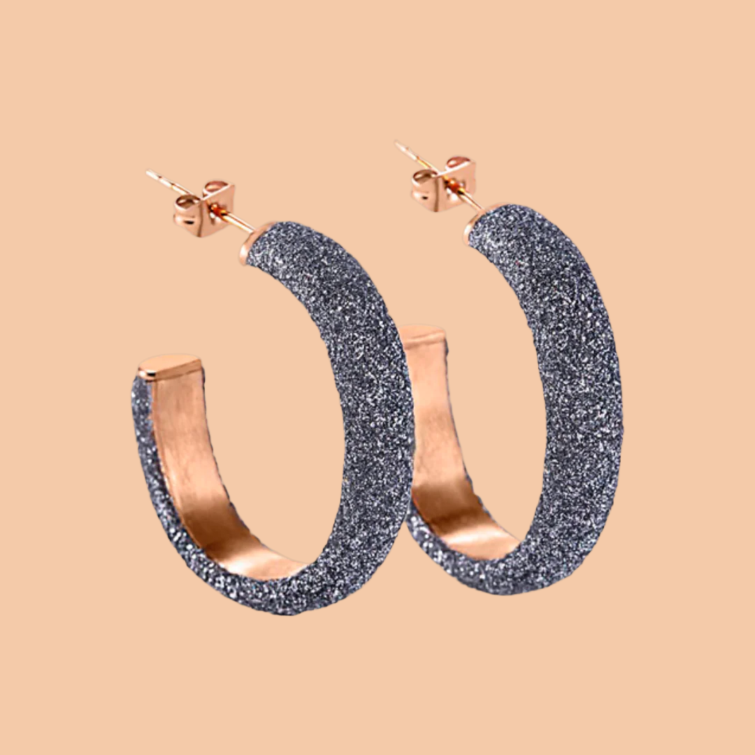 Diese ovalen Ohrstecker aus grauem Edelstahl sind rosée-vergoldet und mit einem zarten Sternenglanz, aus schwarzem Mineralienstaub mit kleinen Diamantsplittern, veredelt. Ihr elegantes, zurückhaltendes Design verleiht jedem Outfit eine subtile Raffinesse und macht sie zum perfekten Accessoire für stilbewusste Trägerinnen, die Wert auf Qualität und zeitlose Schönheit legen.